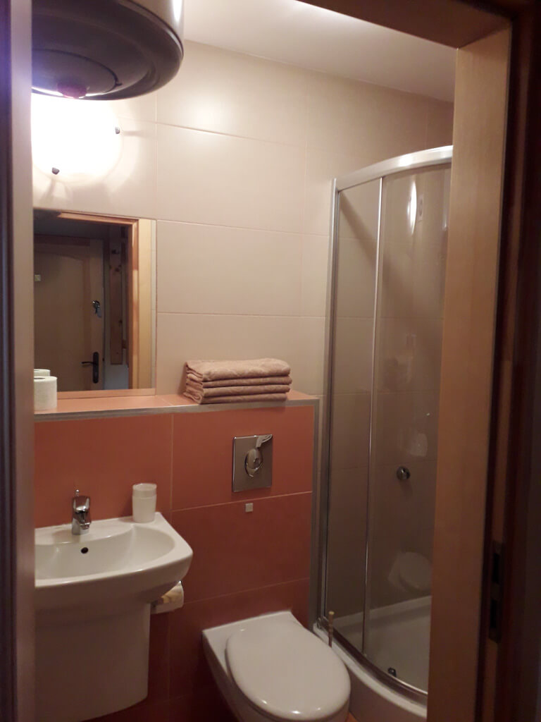 душевая кабина, умывальник, туалет, фен, полотенца, теплые полы